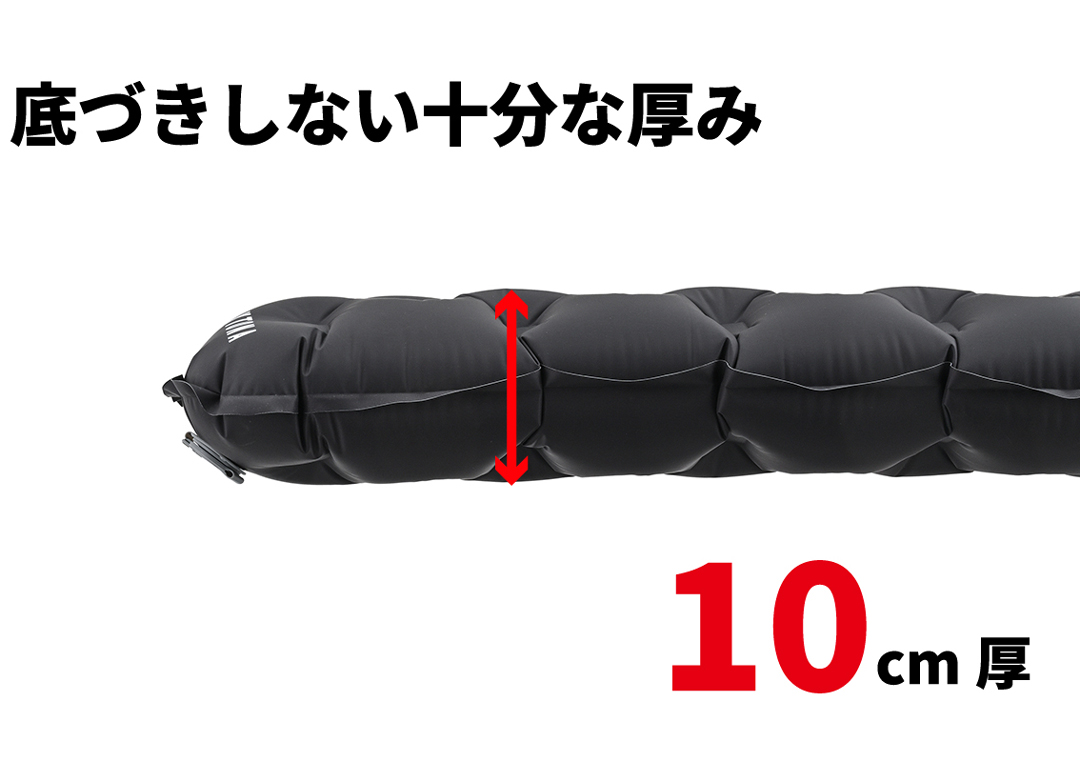 凸凹な地面でも快適な10cmの厚みは、車中泊にもおすすめです。コンパクトだから収納時に邪魔になりません。