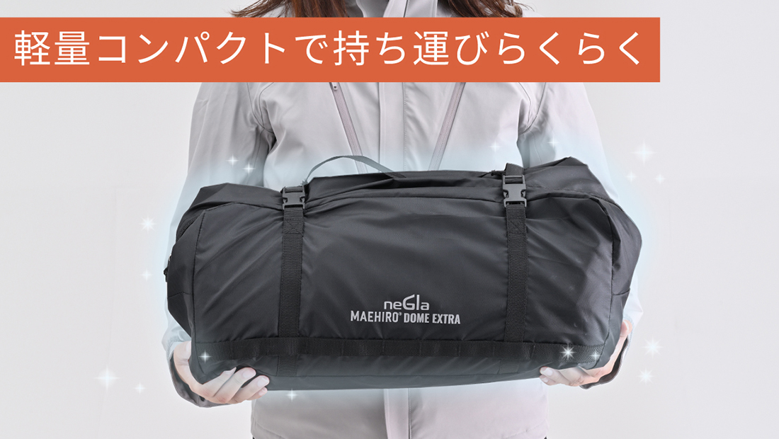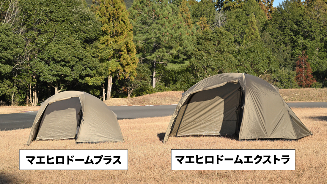 大きなファミリー用は不要、かといって腰を屈める小型テントも選びたくない。積載しやすく、設営は簡単で立って動ける高さと前室の余裕があること。その答えとして誕生したのが、マエヒロドームExtra(エクストラ)です。バイクキャンプで培った快適・軽量・コンパクトのコンセプトを軸に、デュオキャンプに無理なくフィットするサイズバランスと居住性を追求しました。